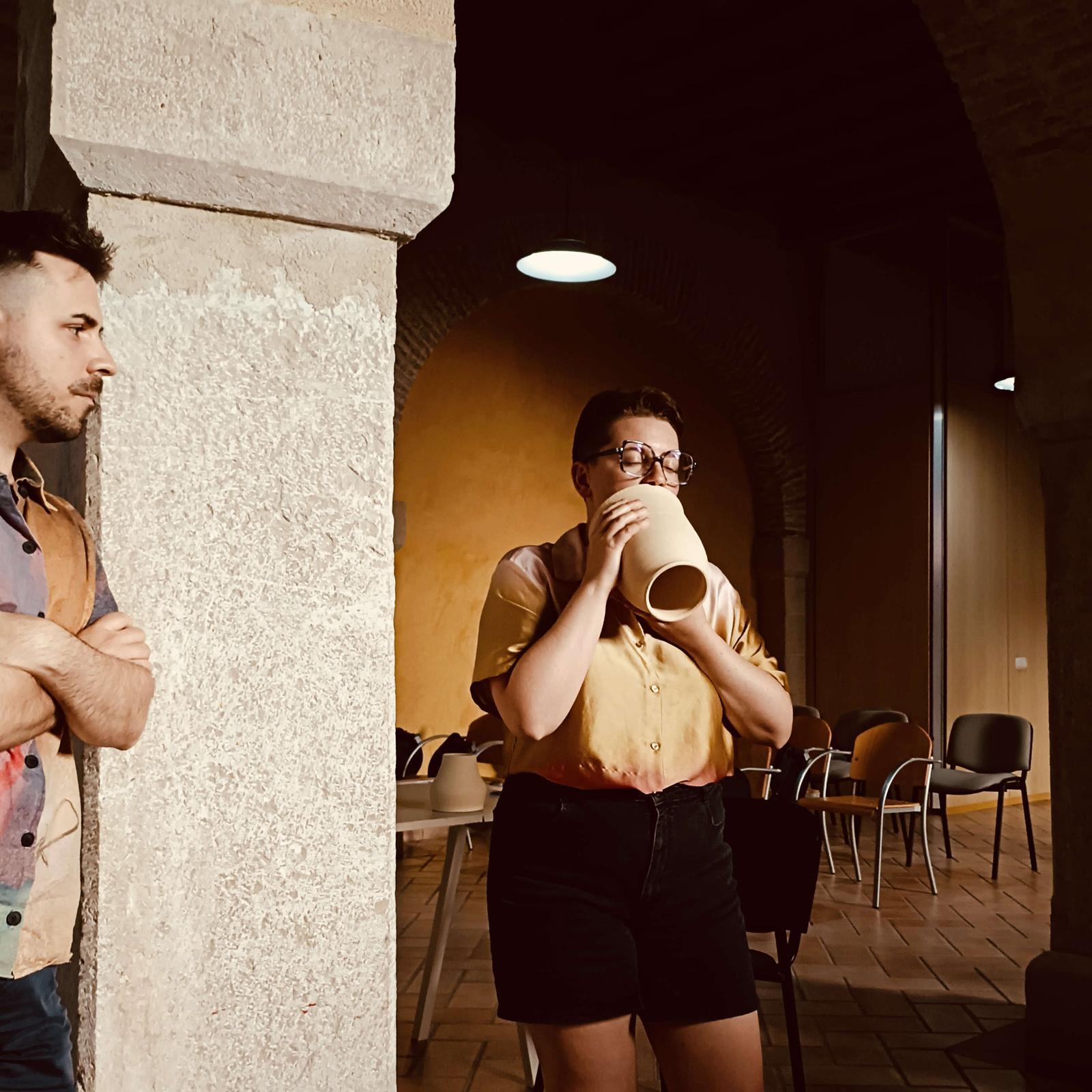 Durante dos días, el Palacio Villapanés se convirtió en un taller sonoro. Las mesas, antes ocupadas por papeles y diagramas, se llenaron de cerámicas, pieles y grabadoras. Las piezas cerámicas creadas para SONE junto a la Escuela de Arte de Jerez (EASDJ) y Gresierra, se convirtieron, en las manos de Los Coca, Belenish Moreno-Gil y Óscar Escudero, en cuerpos sonoros listos para ser explorados por la escucha atenta y la experimentación.