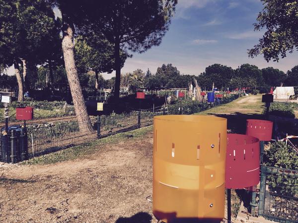 Hasta el día 6 de Enero estará abierta la intervención de #lucesdebarrio en los huertos de Miraflores. Como el horario es fundamentalmente diurno, más que luces encontrarán reflejos, sombras y destellos amarillos. Acompañándolos, misteriosos fragmentos seleccionados por los niños del programa ed